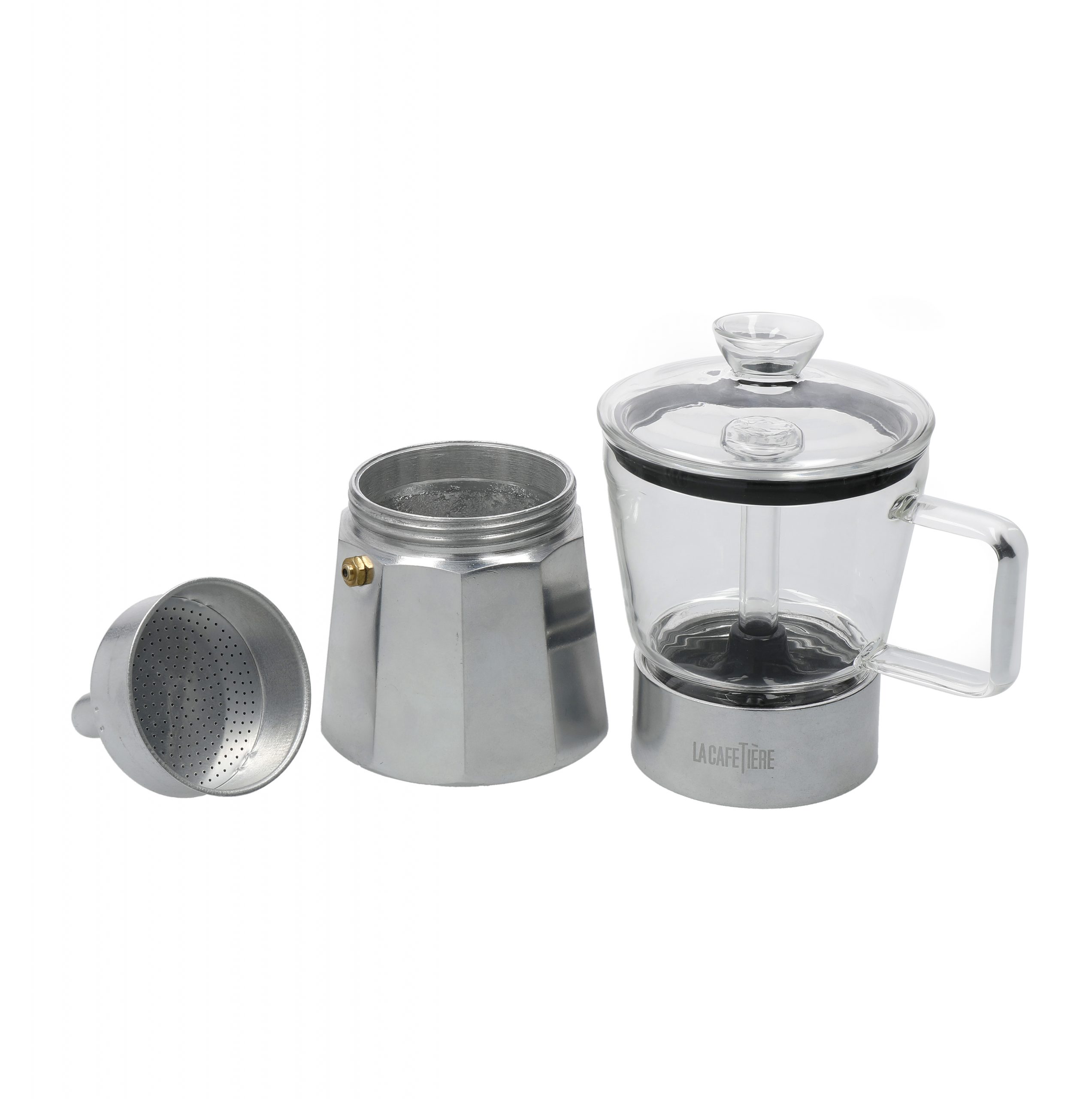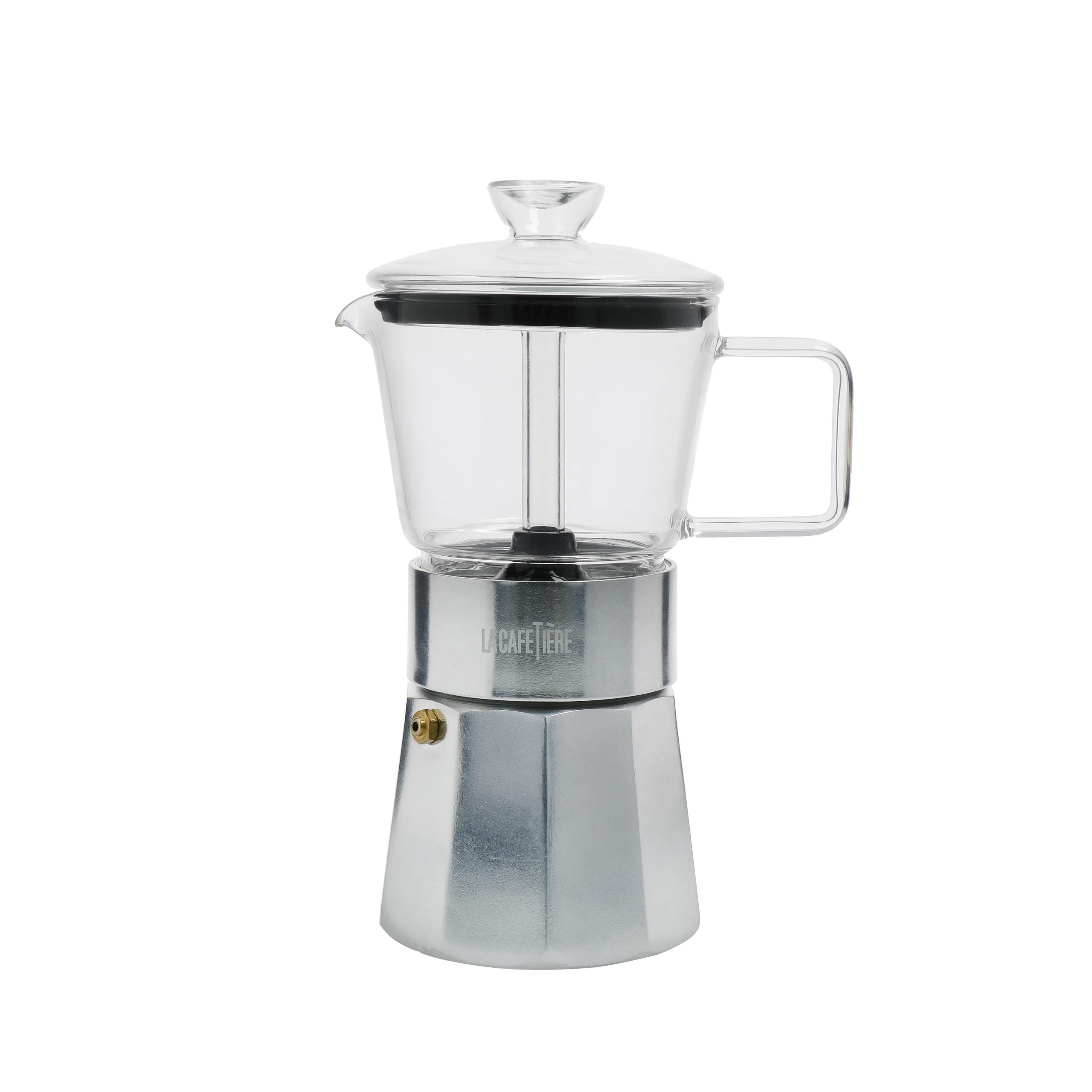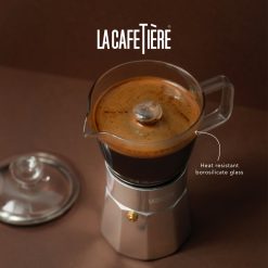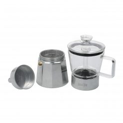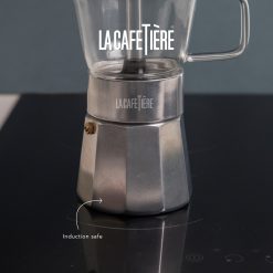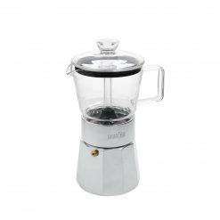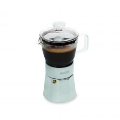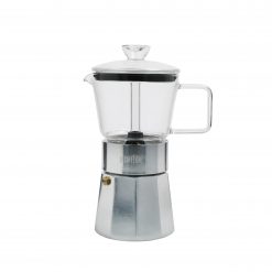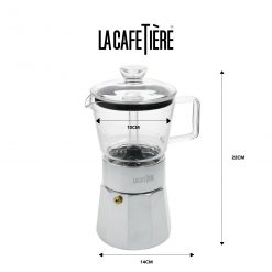 This 6 cup Verona stovetop espresso maker from La Cafetière revisits the classic Italian design – with a twist. By incorporating heat-resistant borosilicate glass in the top part of the pot, this clever innovation allows the user to watch the coffee bubble and brew!
