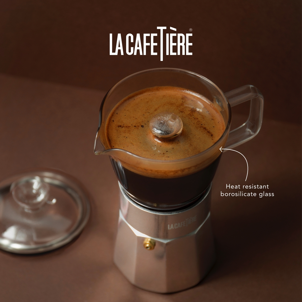- Heat resistant borosilicate glass upper chamber