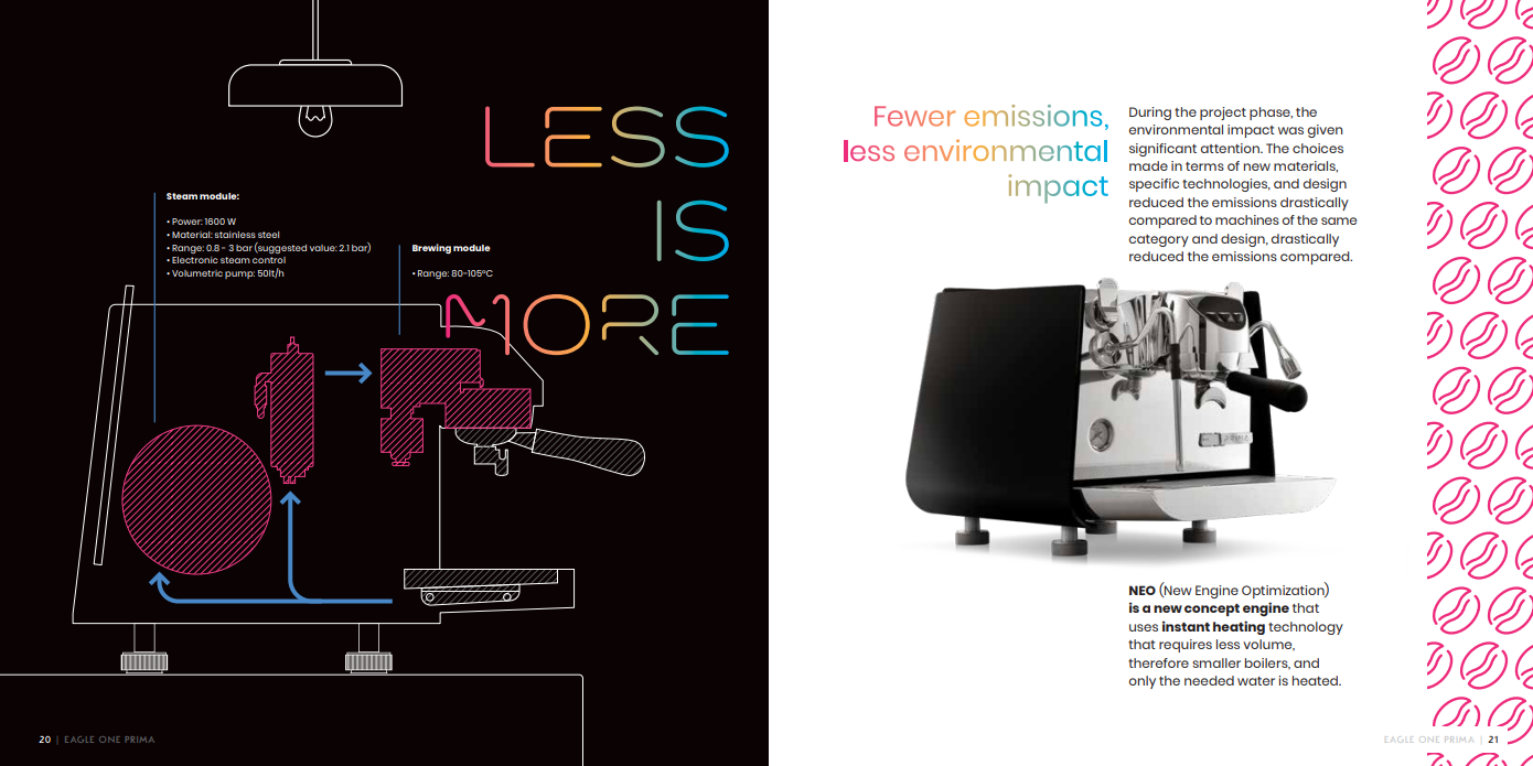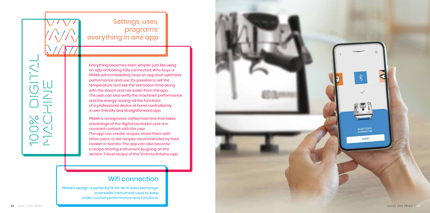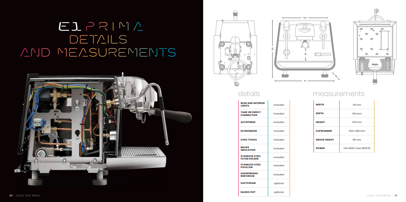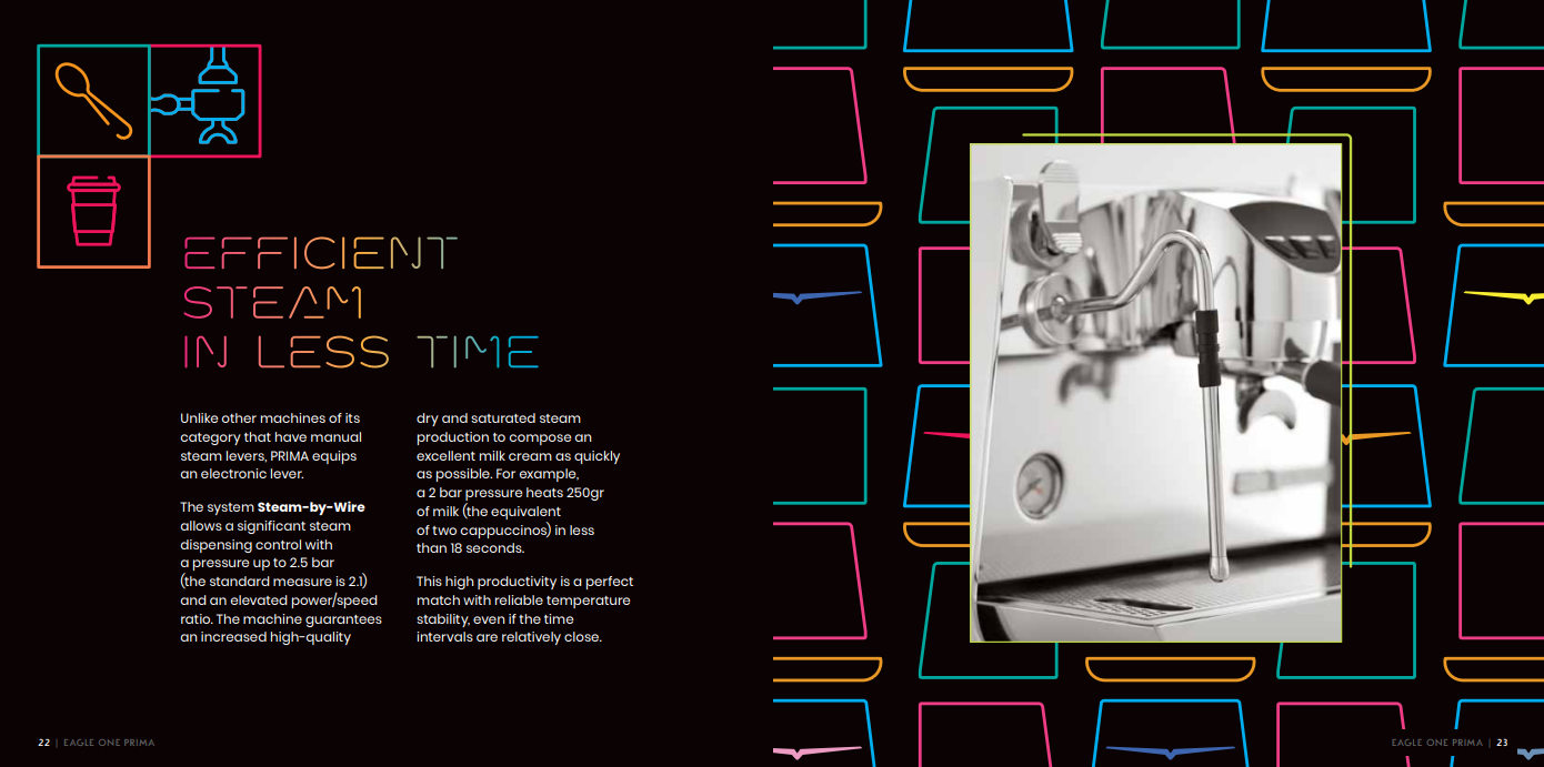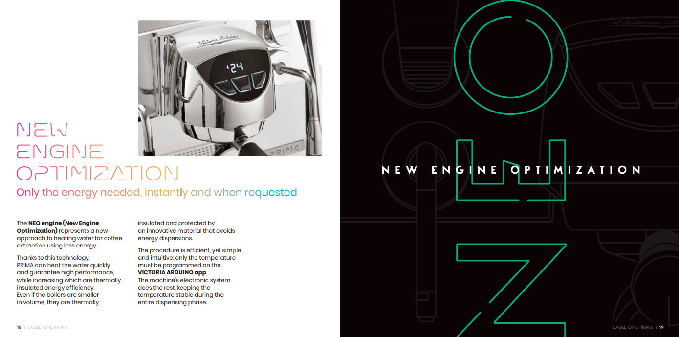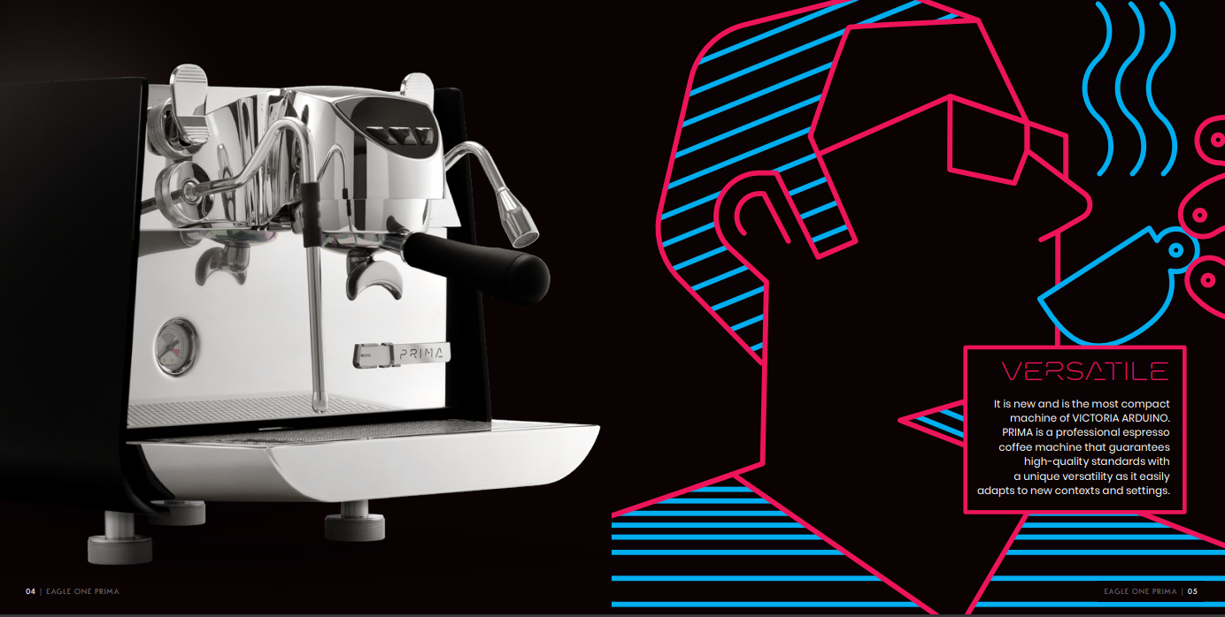 The Eagle One Prima is a versatile and eclectic coffee machine that opens up a new way of living and perceiving the coffee experience. Prima is the first step towards a new frontier, a new way to prepare and enjoy espresso and will overcome many boundaries. Utilising the same NEO technology found in the Eagle One 2 and 3 group machines, the Prima’s settings are all controlled through the new Victoria Arduino app, giving control to adjust temperature, pressure, and access to espresso brewing recipes from all around the world.