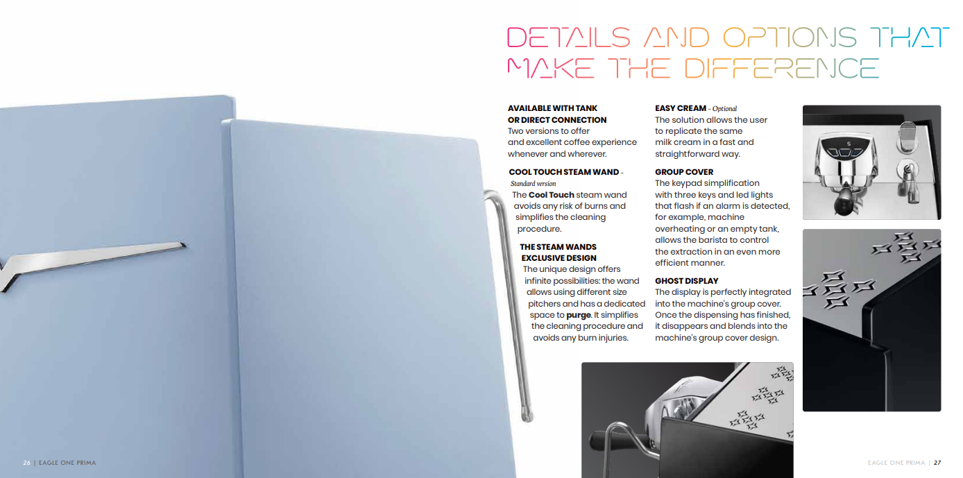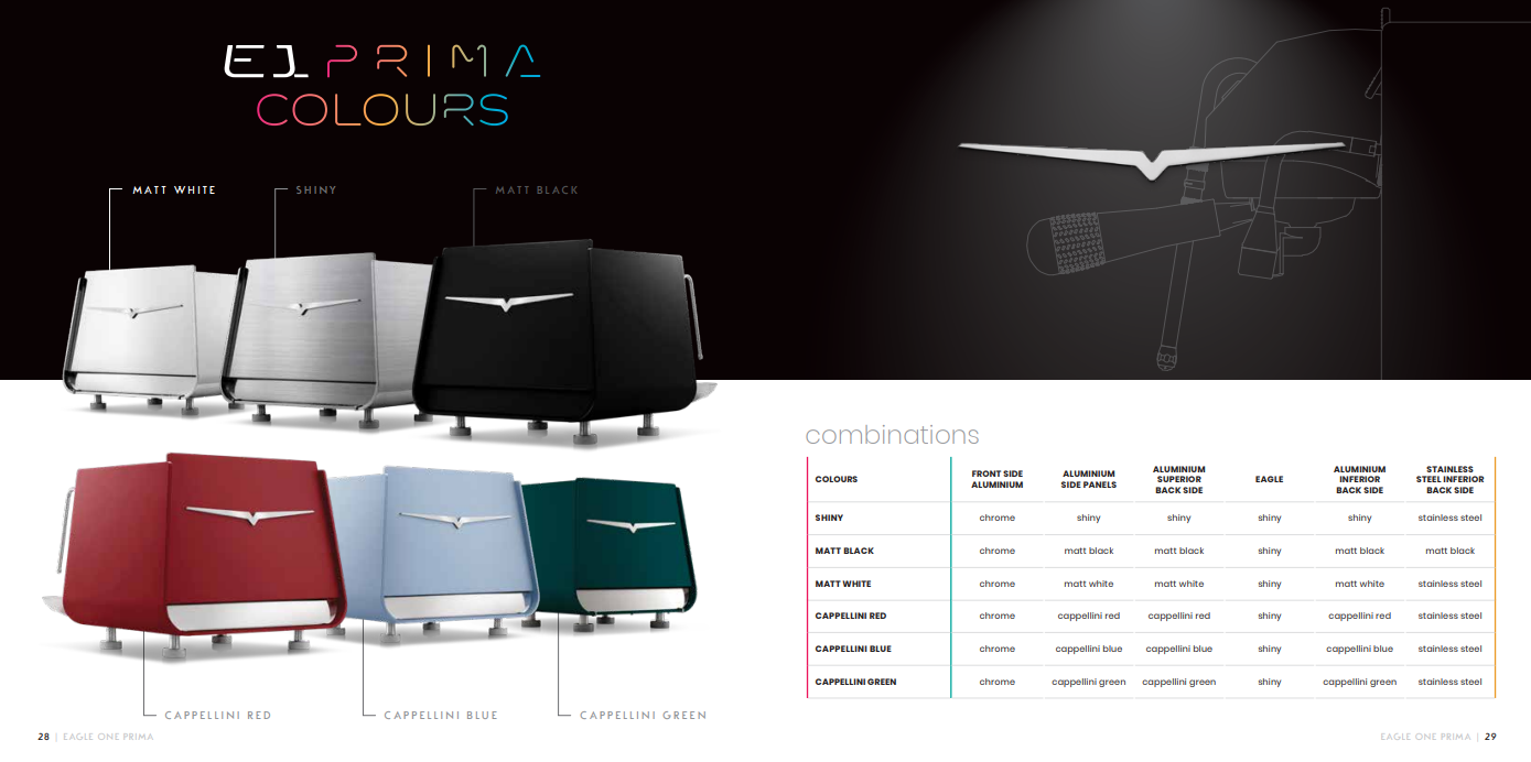 Available in a range of colours, and with the option to run off mains water or internal water tank, the Eagle One Prima is a versatile one group espresso machine that fits every style and occasion.
